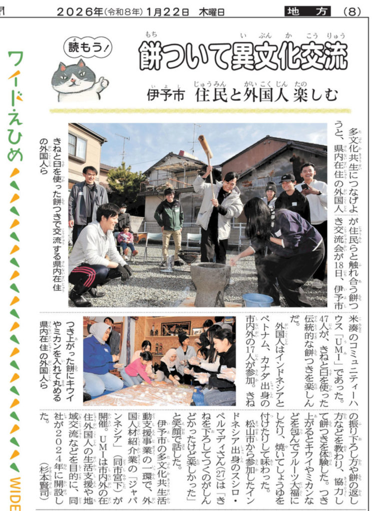 多文化共生UMI、外国人とのもちつき交流会が愛媛新聞に掲載